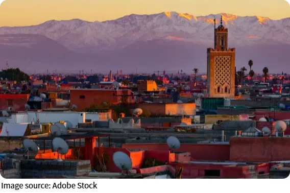 Marrakech is Morocco’s “Red City,” famous for its red sandstone walls, bustling souks, and colorful culture. Nestled at the foot of the Atlas Mountains, it is the fourth largest city in Morocco and the capital of the Marrakech-Safi region.