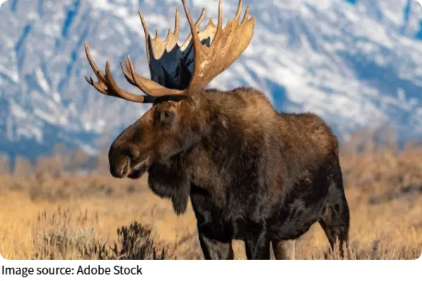 Mature bull moose are the largest members of the deer family. Their tall, muscular bodies and long legs make them powerful walkers in snow or swampy areas. The antlers are not just for show—they are used during the mating season to compete with other males and to display dominance.